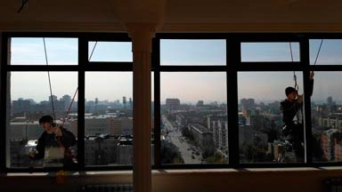 | Мытьё с замели, с помощью стремянок, вышек, автовышек, подъемных устройств и тур |